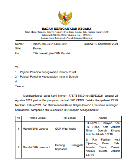 Daftar Titik Lokasi SKD BKN Mandiri