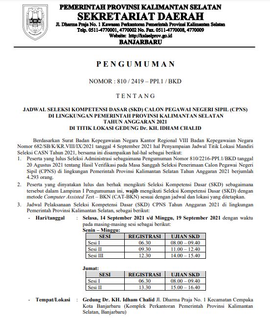 Pengadaan CPNS Dari Pelamar Umum Di Lingkungan Pemerintah Provinsi Kalimantan Selatan