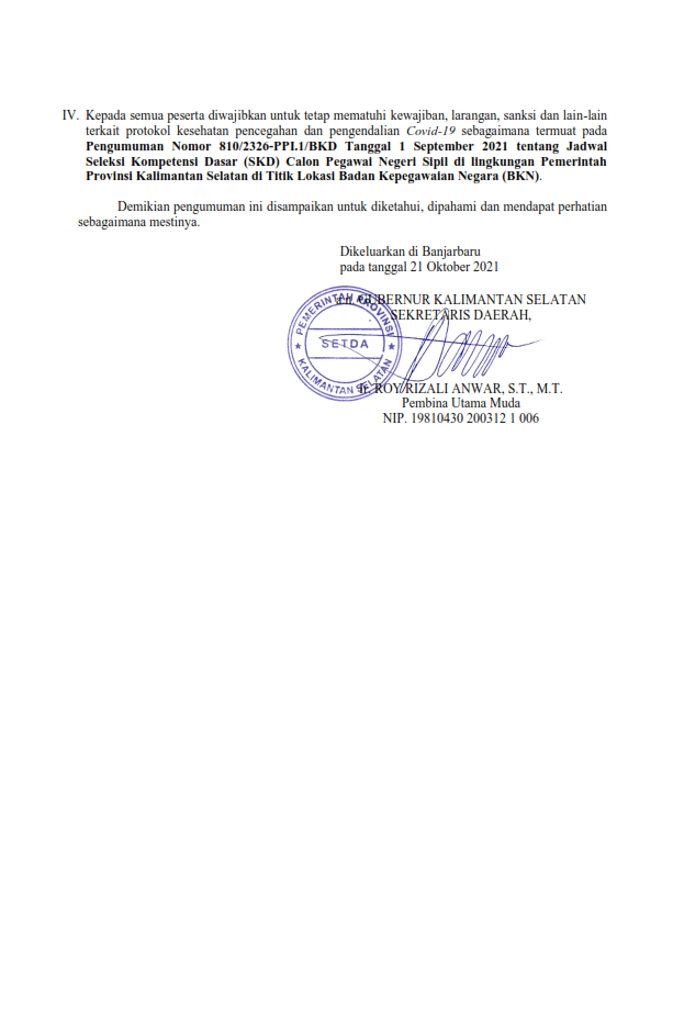 Pengadaan CPNS Dari Pelamar Umum Di Lingkungan Pemerintah Provinsi Kalimantan Selatan