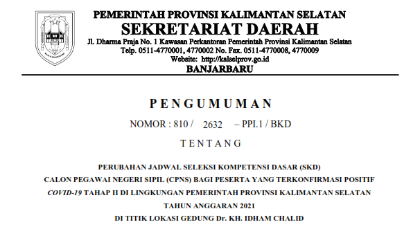 Pengumuman Perubahan Jadwal SKD CPNS Peserta Yang Terkonfirmasi Positif COVID19 Titik Lokasi Idham Chalid Tahap II