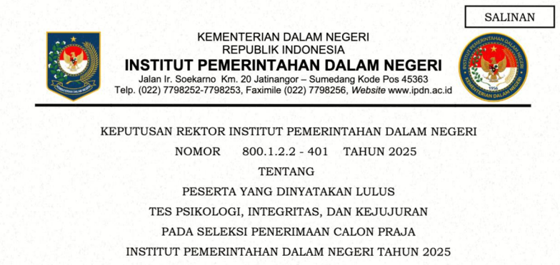 SALINAN PESERTA YANG DINYATAKAN LULUS TES PSIKOLOGI, INTEGRITAS, DAN KEJUJURAN