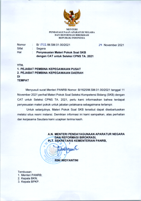 Penyesuaian Materi Pokok Soal SKB Dengan CAT Untuk Seleksi CPNS TA. 2021
