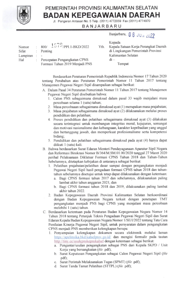 Badan Kepegawaian Provinsi Kalimantan Selatan © 2020