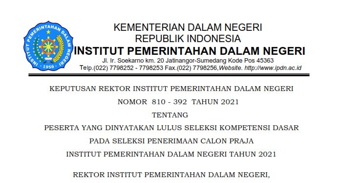 Surat Keputusan REKTOR IPDN dapat diunduh DISINI